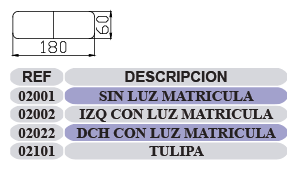 02044 Piloto Rectangular Aleta derecha sin luz matr.